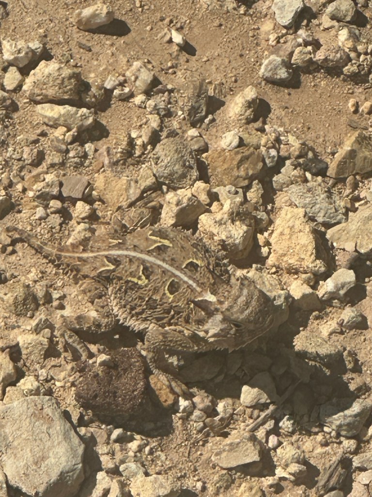 Stepped out of my camper to do laundry on Tuesday and this little guy was there to greet me. This is a horned lizard and they are almost everywhere on the west side of Texas. Many people call them horned toads because they are built like a toad, from Iowa. I like to call them “horny toads.”